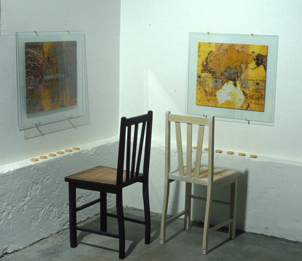 2000 Years visualises political history telling by indoctrination, taking into account religious, geographic and educational paradigms that have given form to our constructed national identity in Australia. It suggests oppositional conflict and cultural hegemony as described by Homi Bhabha as an incommensurable third space, a void in which ironically the colony now seeks to order.